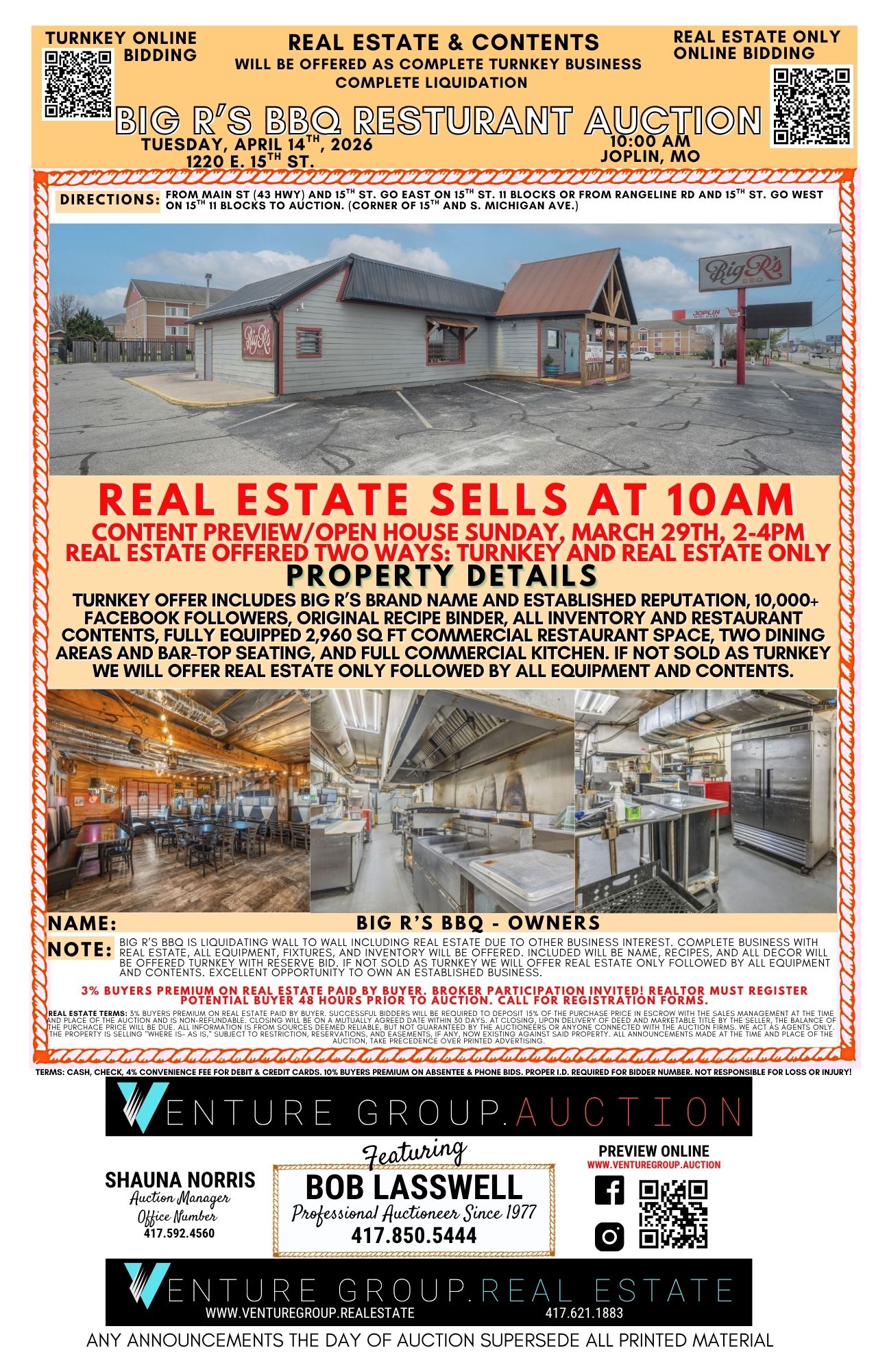 online bidding turnkey restaurant